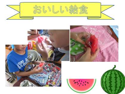 すいかが好きな子,苦手な子それぞれでしたが,みんなしっかり食べていました。