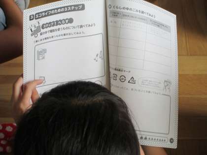 エコライフのための3ステップとして,「へらす」「えらぶ」「きりかえる」ことを挑戦しようというお話がありました。