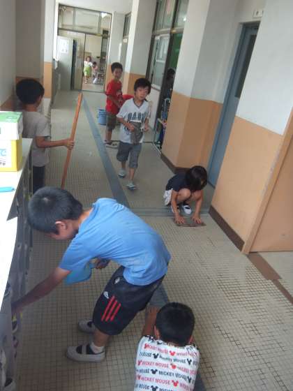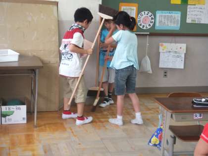 暑さにも負けず,3年生は掃除をがんばっています。