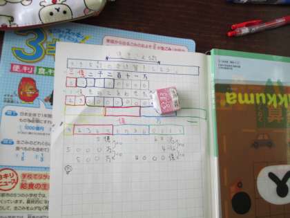 算数では,1億をこえる数の学習をしています。