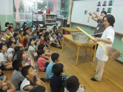3年生は,社会科などで様々な人と交流をもち,そこから学ぶ機会が多いです。そこで第1弾,学校で働く人の給食調理員さんと交流しました。子どもたちは質問で「工夫」「努力」「苦労」「おもい」「願い」などいろいろなことを,目を輝かせながら聞いていました。最後は,給食室で使用されている道具にふれることができました。普段あまり交流のなかった給食調理員さんがとても近くなった様子でした。