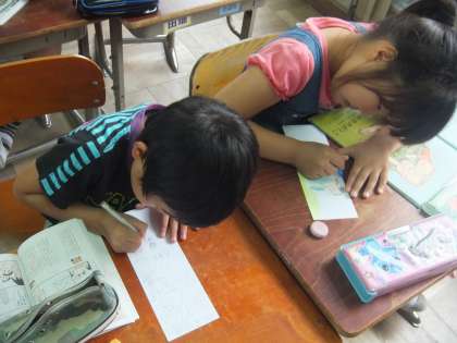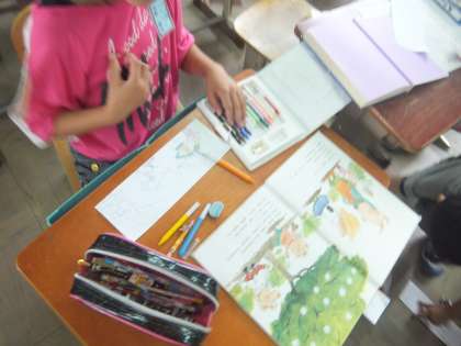 あじさい読書週間の締めくくりに絵しおり作りをしました。