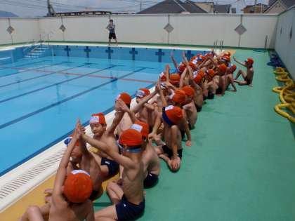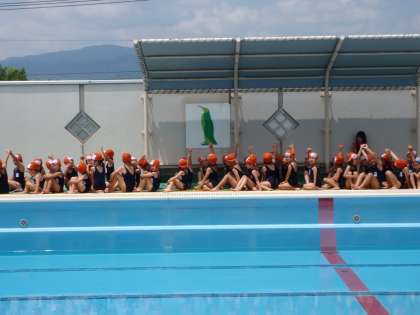 安全にプール学習をするために、バディシステム取り入れています。楽しいプール学習も事故があってはいけません。1年生から身につけるスキルとして徹底しています。