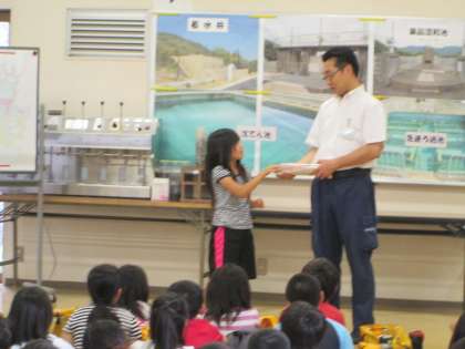 浄水場のさまざまな機械の名称や役割を答えることができました。