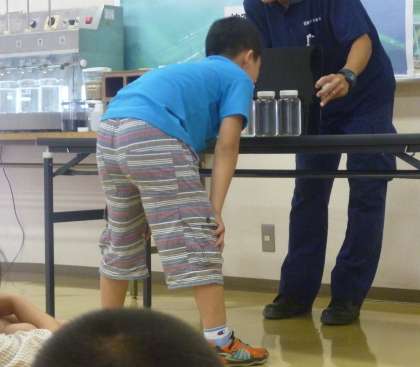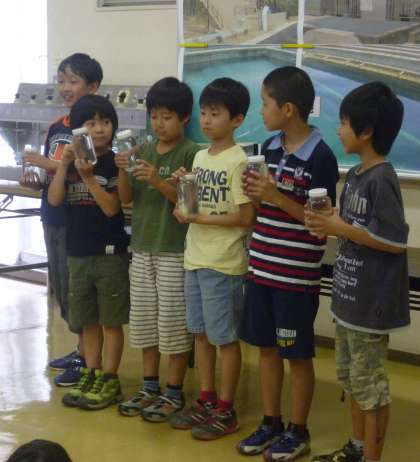 職員さんのご厚意で,代表で何人かの子が,きれいな水を作るお手伝いをしました。