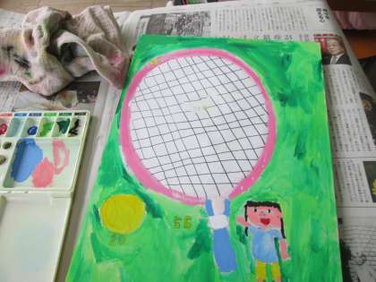 板に描いた思い思いの下絵に,絵の具で色をつけました。