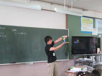 つつに空気をとじこめて,力を加えたときの手ごたえを調べました。