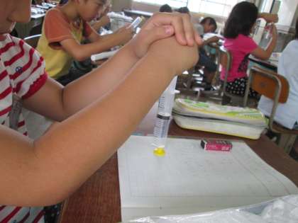 「とてもかたいです。」「元に戻ってきました。」「押し返されました。」