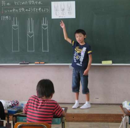 理科の学習で,筒の中に閉じ込められた空気の様子について考えました。