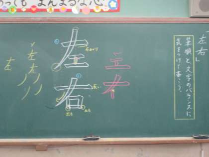 筆順と字形の関係を正しく理解し,筆順に気を付けて,字形を整えて「左右」を書きました。