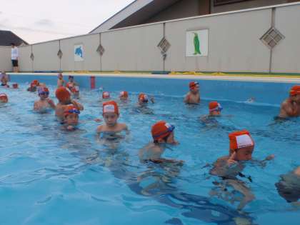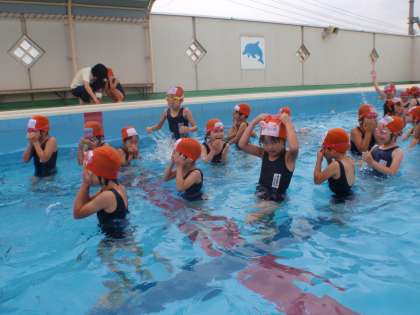 水慣れの期間が過ぎ、この日から、通常の低学年の水位で学習を始めました。これまで子どもたちの膝ぐらいだった水位が、胸辺りまであります。事故にならないように注意を聞いて、守りながら学習を進めました。深さに驚くことはなかったのですが、キャーキャー言いながら楽しみました。