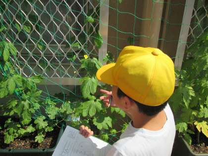 葉の様子や,ツルの様子を観察し,ノートに記録しました。