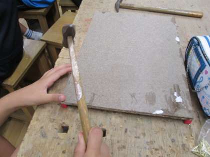 ビー玉が通るようによく考えながら釘打ちをしています。