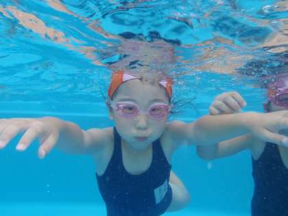梅雨明けして猛暑の中でのプール学習は、顔をつける練習をしました。水の中でブクブクと息を出す練習もしました。体の力を抜いてプカプカ浮かぶなどして、どんどん水に慣れてきました。