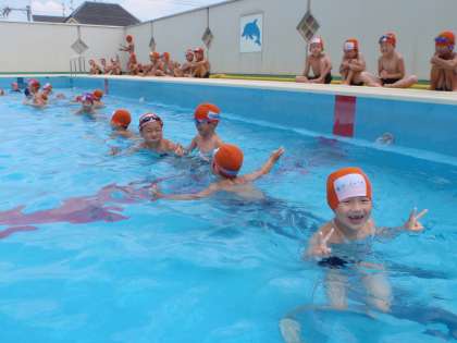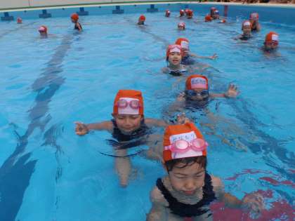 プールでかにさん歩き(1年生)