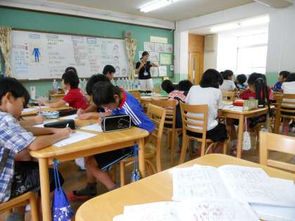 6年生は先週から,ひとクラスずつランチルームで学習しています。