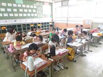 夏休みに入って三日目、サマースクールを開きました。午前中の涼しい時間に学校で学習します。多くの子どもたちが集まりました。夏休みの宿題を中心に勉強しました。次回は29日(月)です。