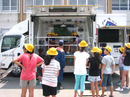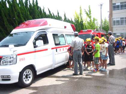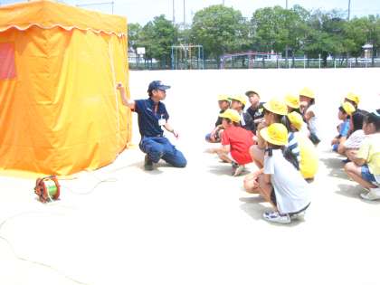 そして,神川出張所の消防の方々にお世話になり,起震車体験・煙体験・消火器体験など様々なコーナーで体験学習をさせていただきました。〜ありがとうございます。〜
