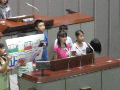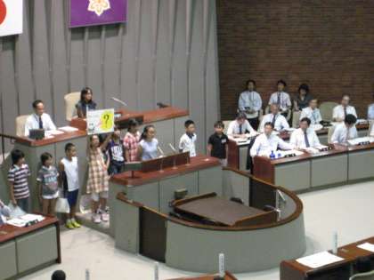 本校の6年生3人が、京都府の子ども議会に参加しました。「環境にやさしく安全な交通」「ゴミに対する意識の向上」について、山田京都府知事や府会議員の方々の前で堂々と意見を述べました。子どもたちにとって政治を身近に感じるたいへん貴重な経験となりました。