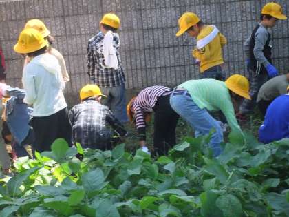 2時間目の清掃活動で畑の草抜きをしました。子どもたちは夏休みの間に立派に育った雑草を一生懸命引っ張り,たくさん抜いていました。清掃活動に協力してくださった保護者の方,本当にありがとうございました。大変助かりました。今後ともよろしくお願い致します。