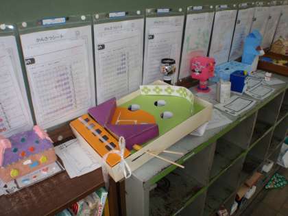 大きな作品から、小さな作品まで、それぞれ自分の好きなものを表現しています。科学実験や工作まで、個性豊かな作品ばかりです。