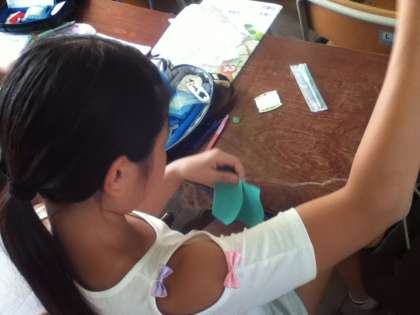 学習のまとめで、フェルトを使ってさいふを作りました。