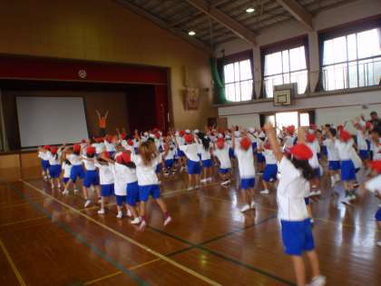 10月の運動会に向けて、ダンスの練習をしました。「なめこの歌」の曲に合わせて踊りました。初めて踊ったとは思えないぐらい上手でした。リズムに合わせて楽しく体を動かしていました。