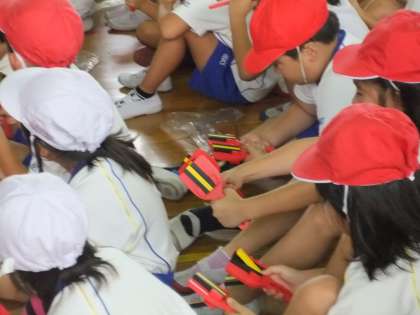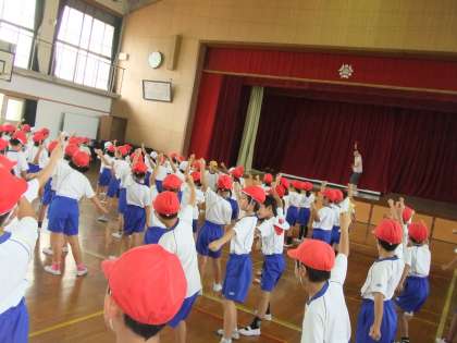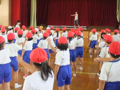 運動会に向けて練習を始めています。今日は,今年の団体演技で使う鳴子の持ち方を学んだり,踊りの練習もしました。子どもたちが生き生きと踊っているのがとても印象的でした。本番で鳴子をもって踊るのがとても楽しみです♪