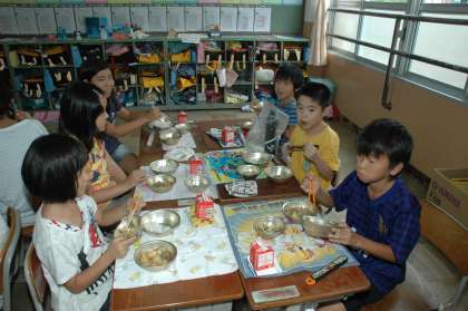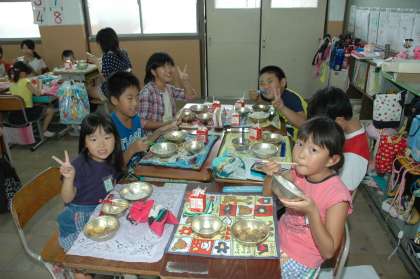 縦割りグループを使っての「なかよし給食」をしました。いっしょに食べる給食は楽しくておいしいものです。いつもよりたくさん、そしておいしく食べることができました。