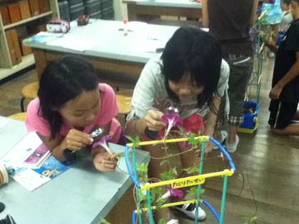朝顔のめしべとおしべの観察をしました。