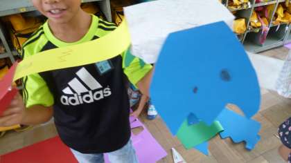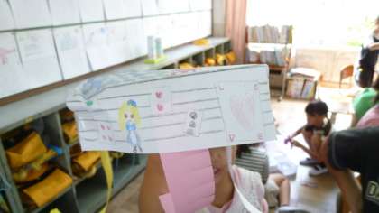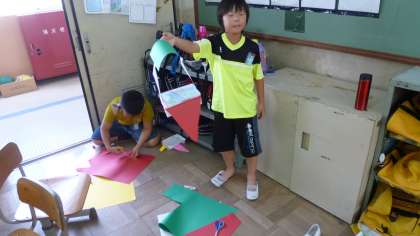 半紙を使って,風の力を受けやすい仕組みを試しながらつくりました。