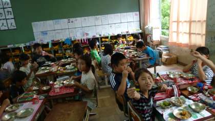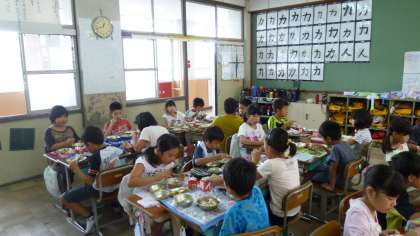 班のお友だちと仲良くおしゃべりをしながら食べるとおいしいね。