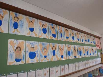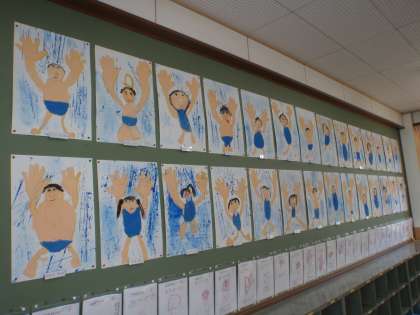 夏にプールに入ったときの様子を絵にかいていました。シャワーを浴びて「キャーキャー」言っている様子が伝わってきます。教室に掲示していまので、個人懇談会で来校されたときにでも見てください。