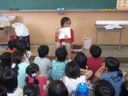 読み聞かサークルの方による「読み聞かせ」がありました。1年生になって回数を重ねているだけあって、どっぷりと話の中に入り込んで聞いていました。次回も楽しみにしていました。