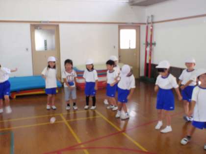 運動会で披露する、「なめこの歌」のダンスが完成しました。この後、運動場で練習して最後の仕上げをします。