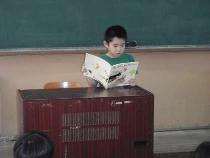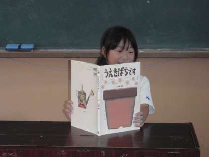 1年生になってからこれまでに読んだ本の中から、お気に入りの本を選んでみんなに紹介しました。夏休みにもたくさんの本を読んでいるので、どれにしようか迷っているようでした。いっぱい紹介したいところを一冊に絞りました。