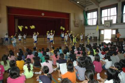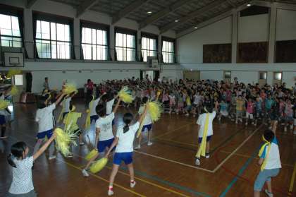 黄組の応援練習は、全員の動きがそろっていました。応援団の児童はもちろんのこと、1年生から6年生までがピチッとそろっていました。結集された力強さを感じさせます。