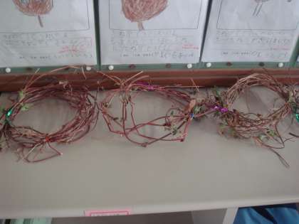一生懸命育ててきたあさがおのつるをつかって,リースを作りました。上手に作ることができました。