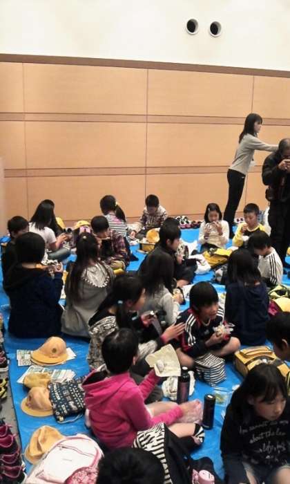 恐竜博物館の見学の前にお弁当を食べました。朝早くに家を出たので、みんなお腹がぺこぺこでした。瞬く間に食べ終わって、お楽しみの見学が始まります。