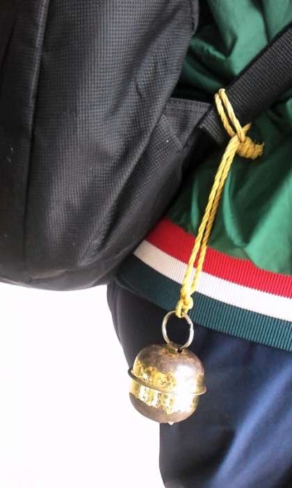 二日目の活動が始まります。高原を歩きます。念のためにクマよけの鈴をもって出発!!