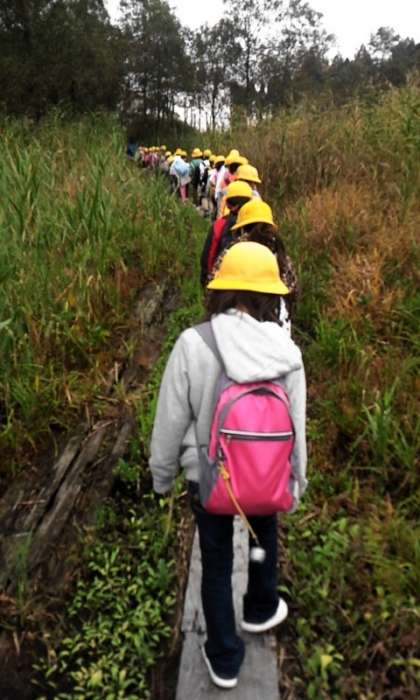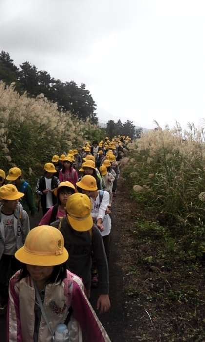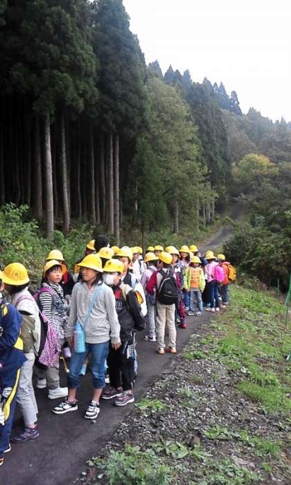 自然の家を後にして、目的地「ミルク工房」をめざしてハイキングです。奥越の自然の中を初めて歩きます。自然の雄大さに感激です。長い山道もみんなで歩けば力が湧いてきます。