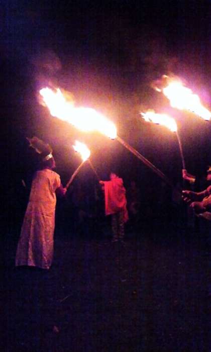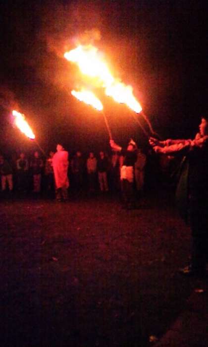 月の明かりもなく、鳥のさえずりも消え、静まりかえった奥越の夜に、火の神に分けてもらった火が灯りました。羽束師4年生のキャンプファイヤーの始まりを告げる狼煙です。子どもたちの心にも火が着きました。ゲーム「ソーレ集まれ」、ダンス「ジンギスカン」、歌「ワイルドアットハート」と次々に予定されたプログラムを楽しみました。先生も子どもたちと一緒になって楽しんだ夜のイベントも、歌「マイバラード」をもって終わりました。薪の火が静か消えるように、会場も静かになりました。。