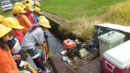 菱川町にあるみず菜畑へ社会見学に行ってきました。農家の方からみず菜づくりの工夫のお話を聞かせていただくことができました。畑で道具や肥料などを実際に見せていただき,お話と実物を結びつけることができました。これからみず菜づくりの工夫をまとめ,出荷先など他地域とのつながりを学習していきます。