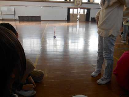 理科で「風とゴムのはたらきをしらべよう」という学習をしています。まず,風のはたらきについて調べました。風受けの大きさや形が変わったときの車の動きを実験して調べていました。