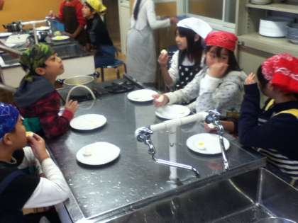 コンロや包丁の扱い方に気をつけて、安全に楽しく実習します。