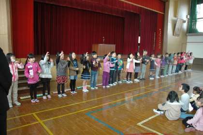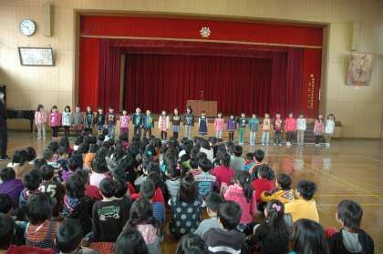 新1年生の入学式での「お迎えの言葉」は、新2年生がします。代表25名の練習ができてきました。体育館で1年生全員に見てもらいました。とても素晴らしいお迎えの言葉です。その立派な姿に、きっと新1年生もビックリするでしょう。代表の皆さん、頑張ってください。