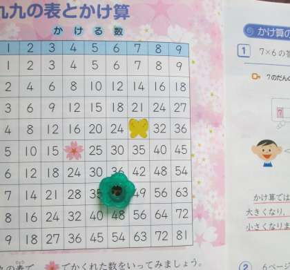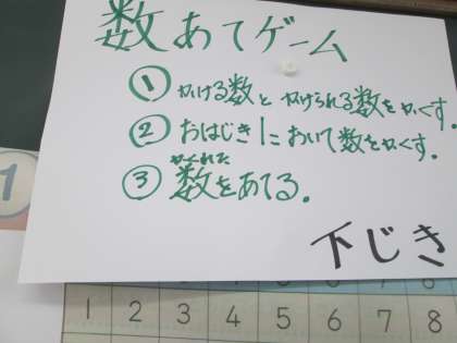 九九の表の一つの場所をかくして,数を当てるゲームをしました。