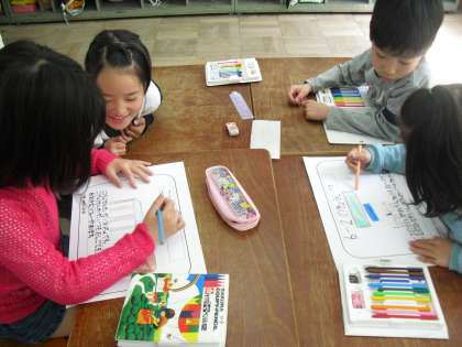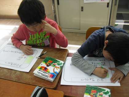 1年生の人にわかりやすくなるように絵を描いたり,丁寧な字で書いたり,工夫をしています。