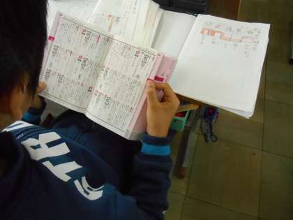 「漢字の組み立て」から部首を知り,その漢字について,漢字辞典の「部首引き」の方法で調べました。