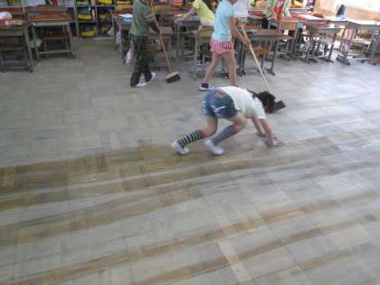 教室と廊下だけでなく,プレイルームや中庭など,学校をきれいにしようと毎日清掃活動をがんばっています!!